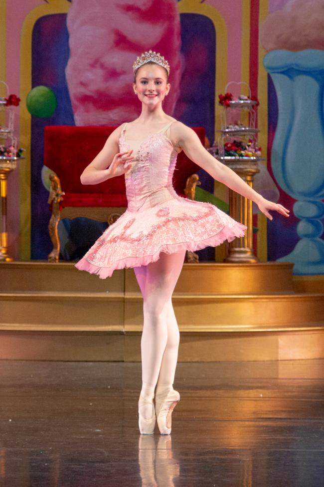 Thaxton will light up the stage during “The Dance of the Sugar Plum Fairy” on Saturday night and will reprise the role during the Sunday matinee. She will delight spectators in the iconic pink platter tutu with its endless layers of tulle and silvery embellishments. With the shimmering crystal tiara on her head, she will display her beautiful balance, technique, and artistry.