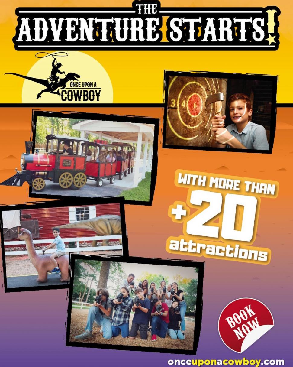 At Once Upon A Cowboy Theme Park, we pride ourselves on offering a unique blend of family-friendly attractions that seamlessly incorporate both Cowboy and Dinosaur themes, ensuring there's something for everyone to enjoy. Come and join us as we celebrate the untamed spirit of the past and embrace the legendary clash of cowboys and dinosaurs in a theme park experience that will make your heart race, your imagination soar, and your inner explorer roar with delight. It's time to unleash the cowboy and explorer within you and experience the most exhilarating adventure of a lifetime!