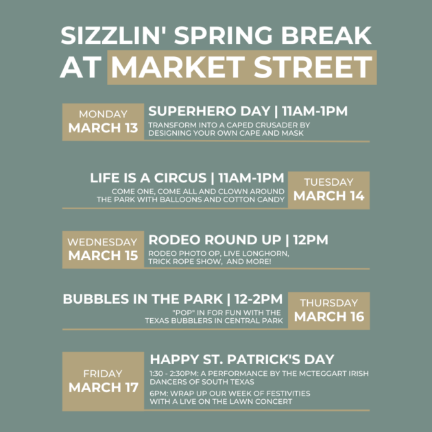 SAVE THE DATE! Spring Break is coming to Market Street. Mark your calendars for March 13th - 17th and check out the details for each day below: